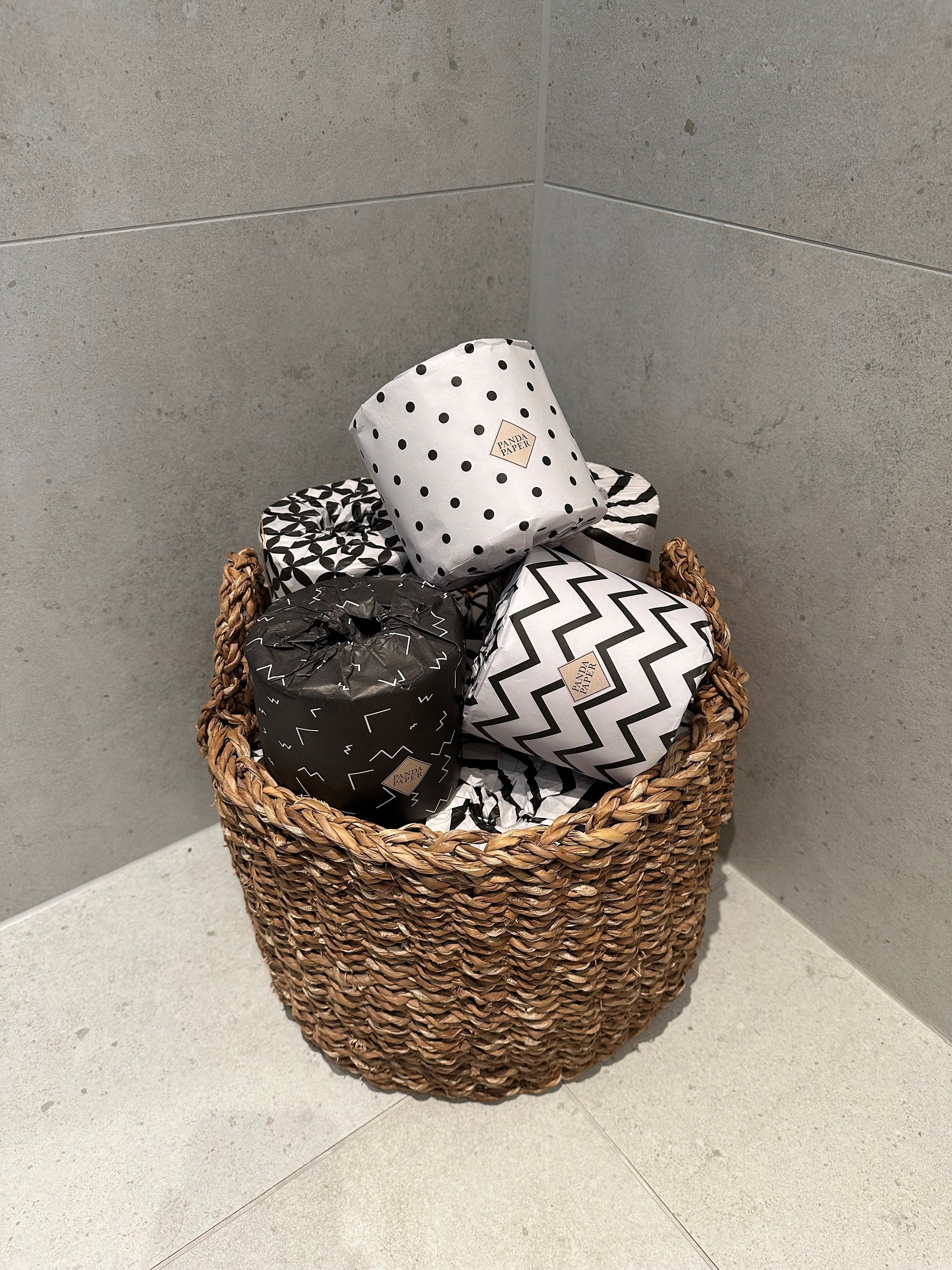 Upplev våra elegant inslagna toalettrullar som är skonsamma för din hud och vår natur. Med sin unika design samt dess mjukhet, är våra toalettrullar en tilltalande detalj som höjer inredningen i badrummet och skapar en mer exklusiv upplevelse för dig och dina gäster. Vi på Panboo Paper är stolta över att erbjuda en produkt som inte bara är värdefull för dess höga kvalitet och prestanda, utan den är också tillverkad av bambu som är en förnybar resurs.